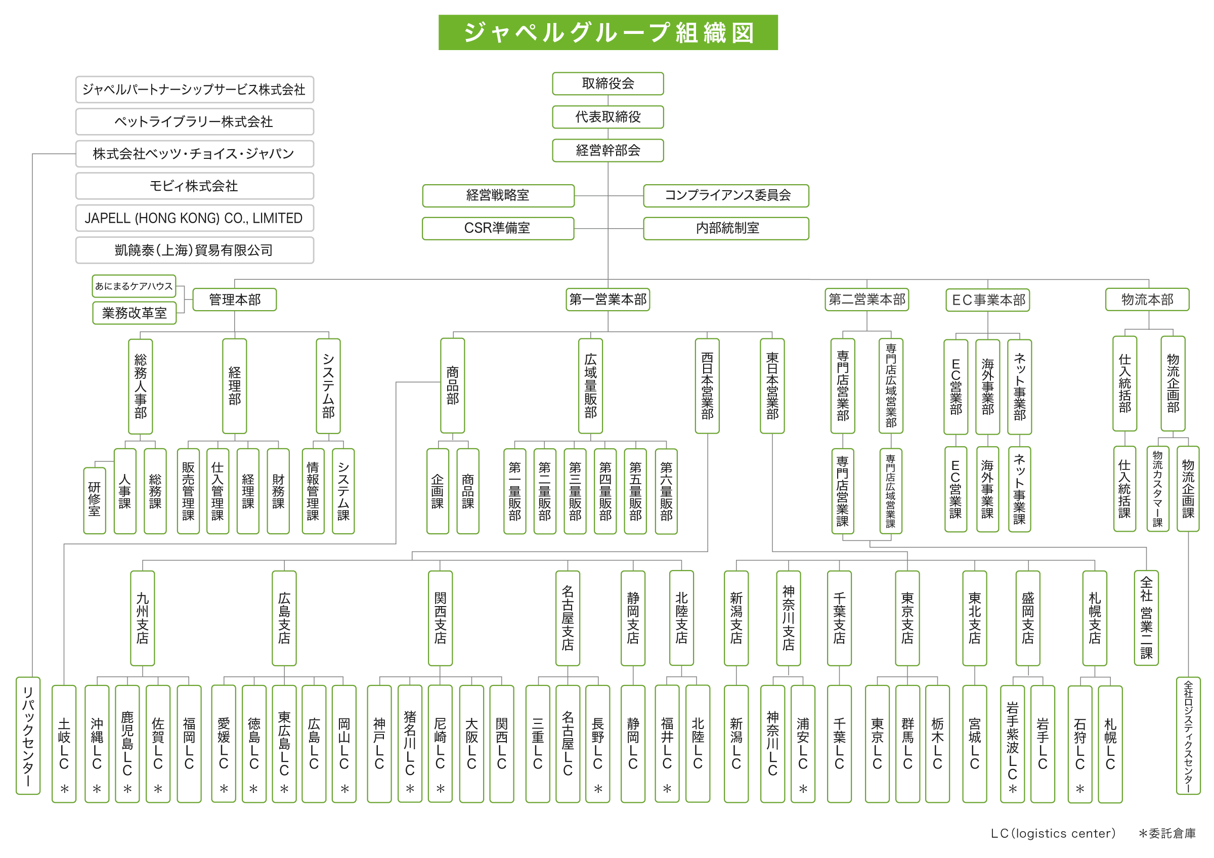 | グループ会社 | ジャペルパートナーシップサービス株式会社 ペットライブラリー株式会社 株式会社ベッツ・チョイス・ジャパン モビィ株式会社 JAPELL (HONG KONG) CO., LIMITED 凱饒泰(上海)貿易有限公司 |